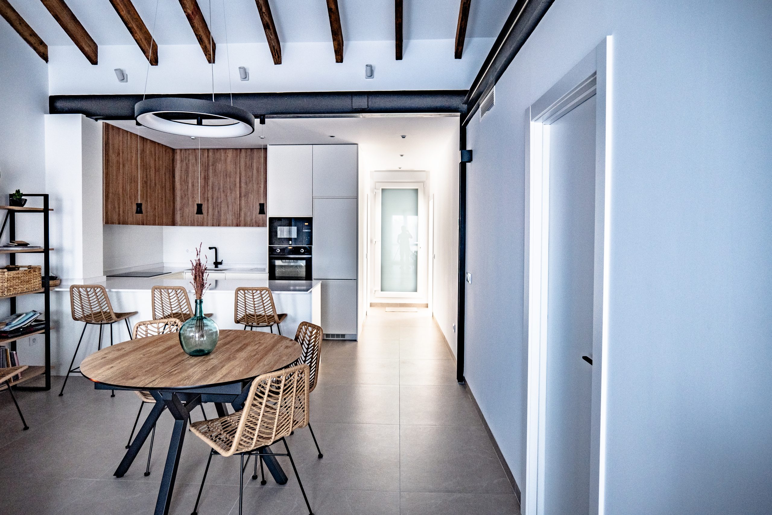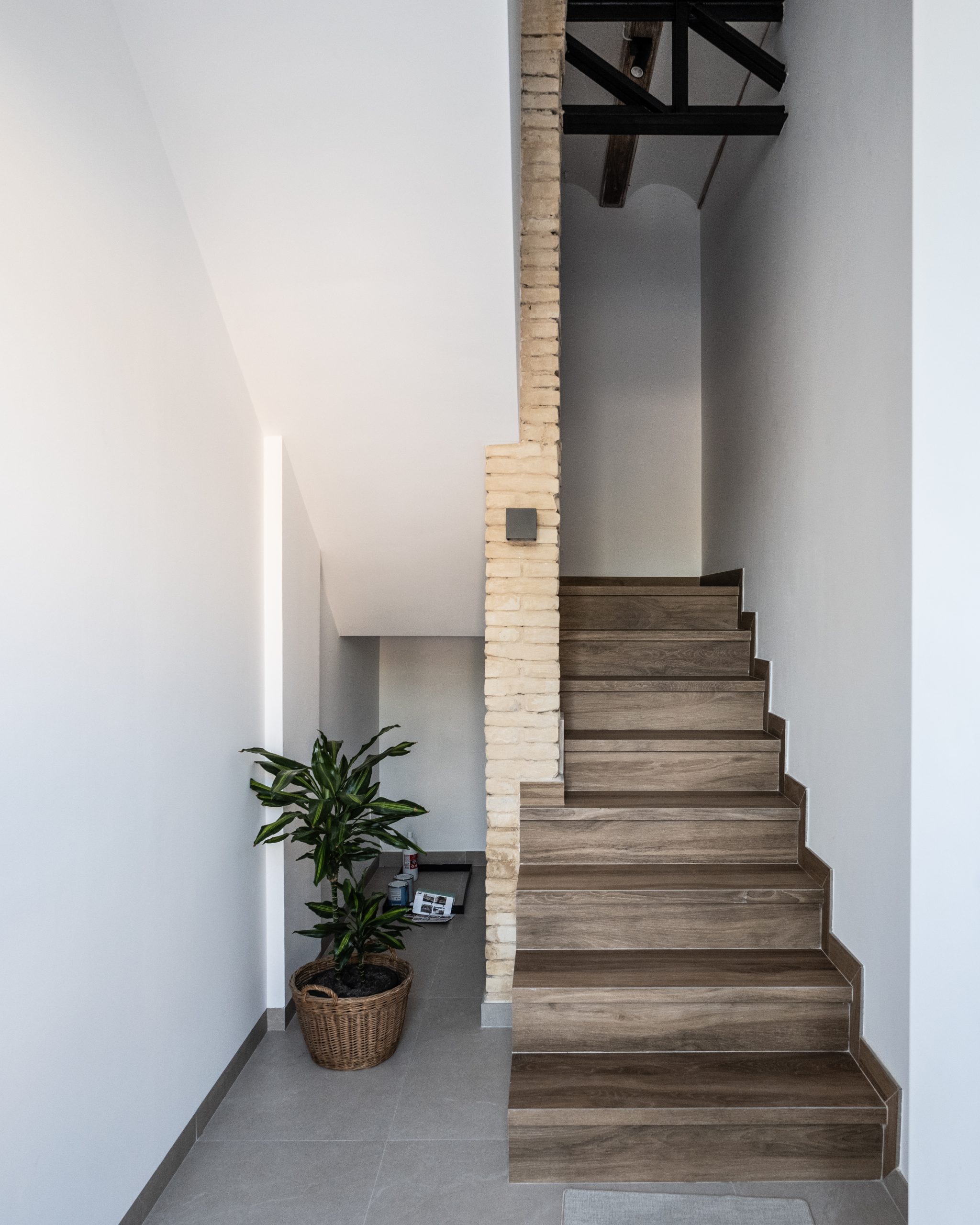 En este proyecto llamado «La Punta», hemos rehabilitado por completo esta vivienda unifamiliar entre medianeras de nuestros clientes, José y Esther. La intervención abarcó dos plantas: la planta baja se destina al garaje, mientras que en la primera planta hemos diseñado la vivienda, atendiendo cuidadosamente las necesidades de los propietarios. La vivienda se abre en dos direcciones: hacia la fachada principal, que proporciona acceso, y hacia un patio interior y una terraza posterior. El resultado es un hogar funcional, moderno e iluminado, que no solo satisface, sino que supera las expectativas de nuestros clientes.