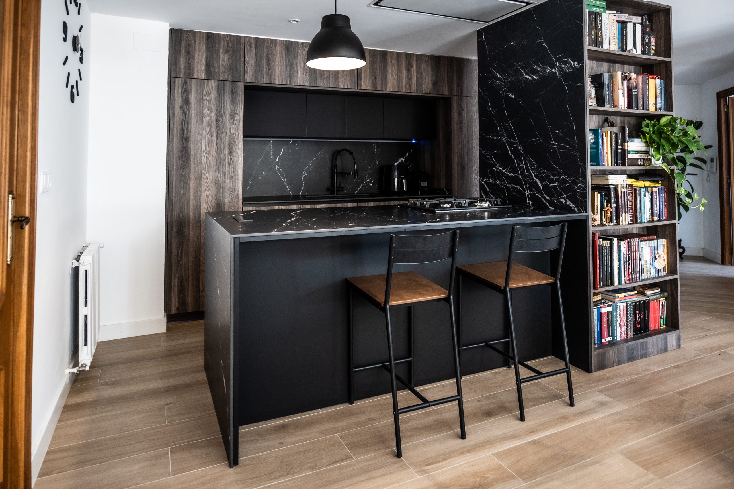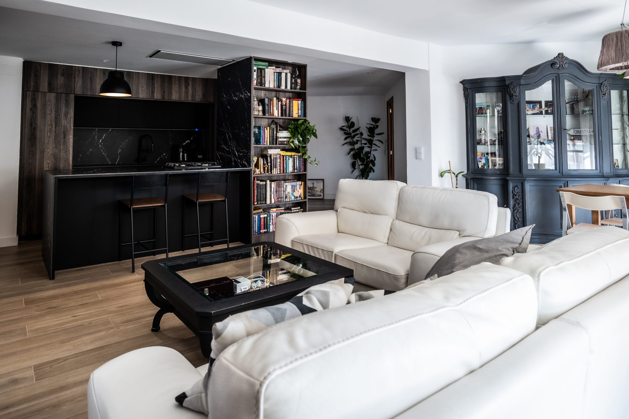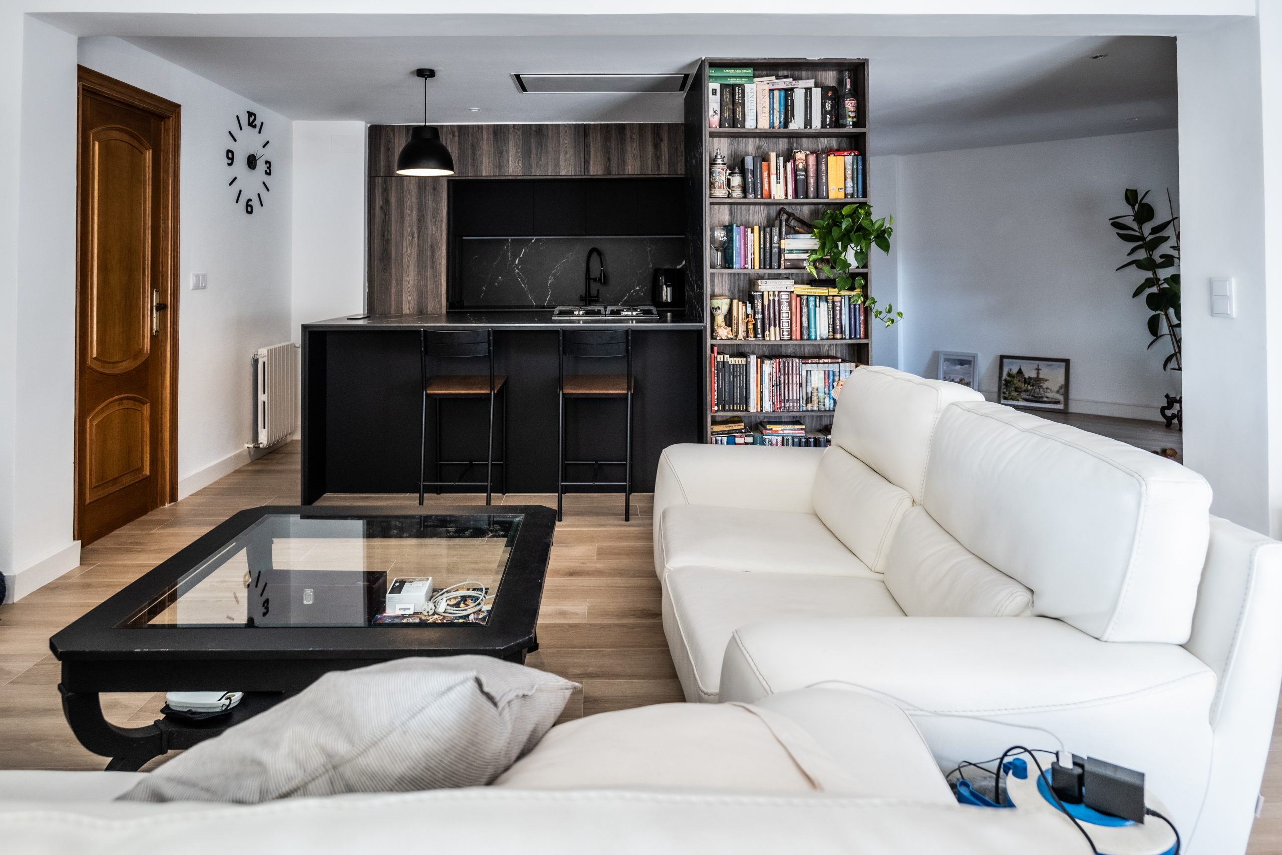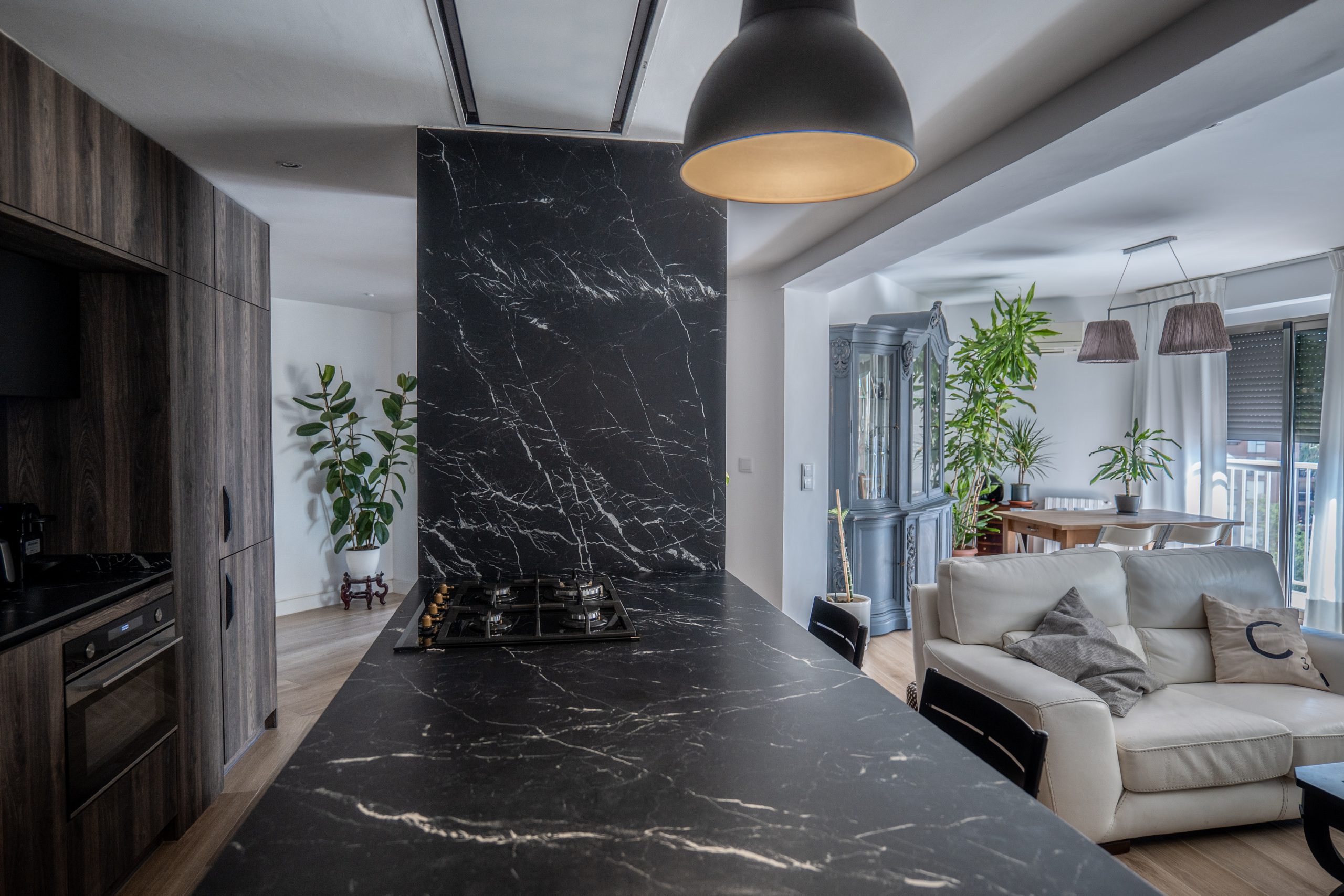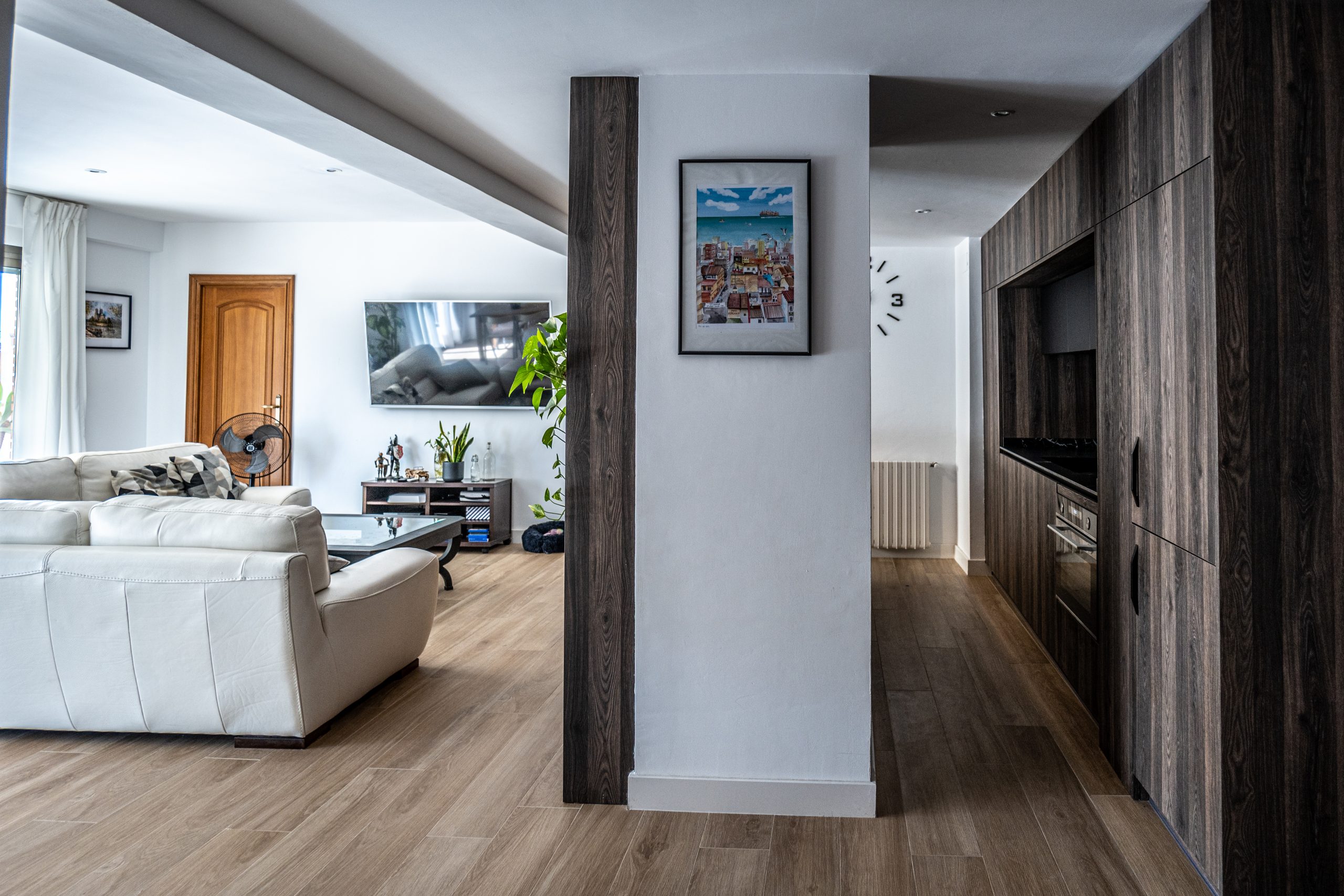 En este proyecto de reforma integral se llevó a cabo una intervención total en la vivienda, replanteando la distribución de los espacios de manera estratégica. El objetivo principal fue establecer una conexión fluida entre la cocina y el salón-comedor, derribando barreras físicas para integrar estos dos ambientes y maximizar su funcionalidad. Con esta solución, se logró no solo potenciar la interacción visual y espacial entre ambos, sino también adaptar el conjunto a las necesidades específicas de nuestro cliente, Carlos.
